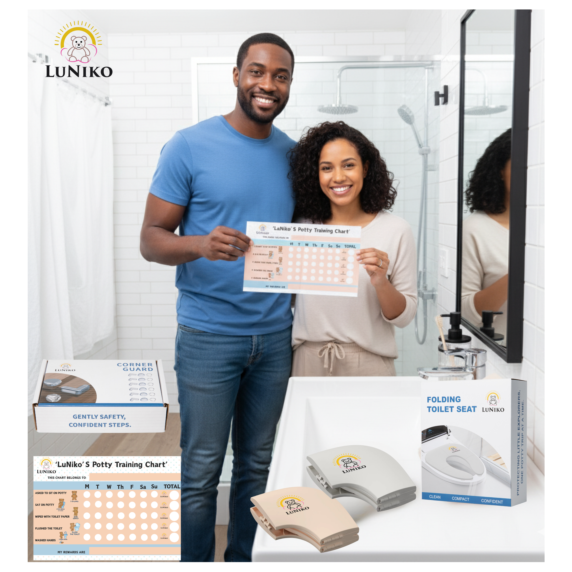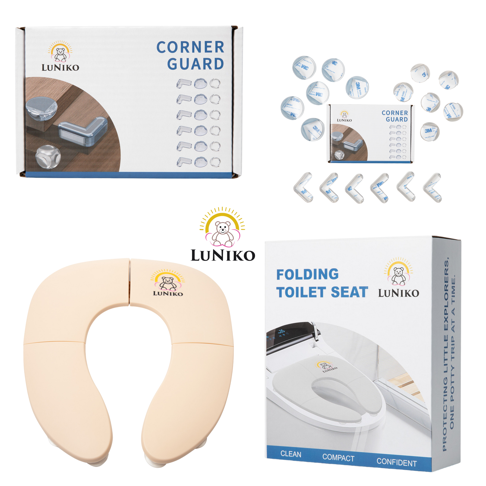 LuNiko Corner Guard & Potty Training Combo – 18-Piece Safety Set + Folding Potty Seat with Training Chart (Beige Edition) (Copia)