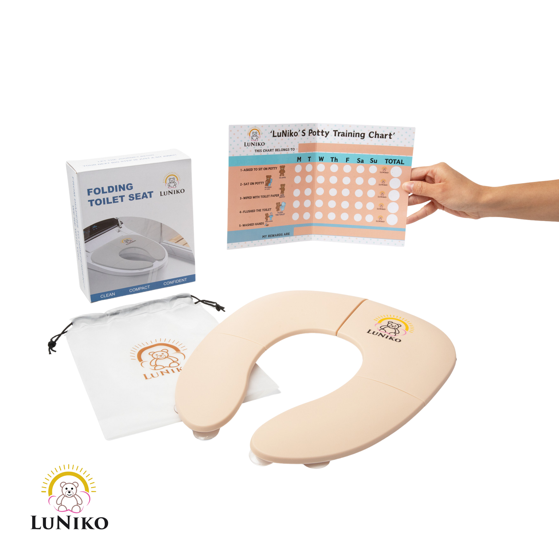2. Folding Potty Seat – Beige Edition - A complete potty training solution packed in one set: