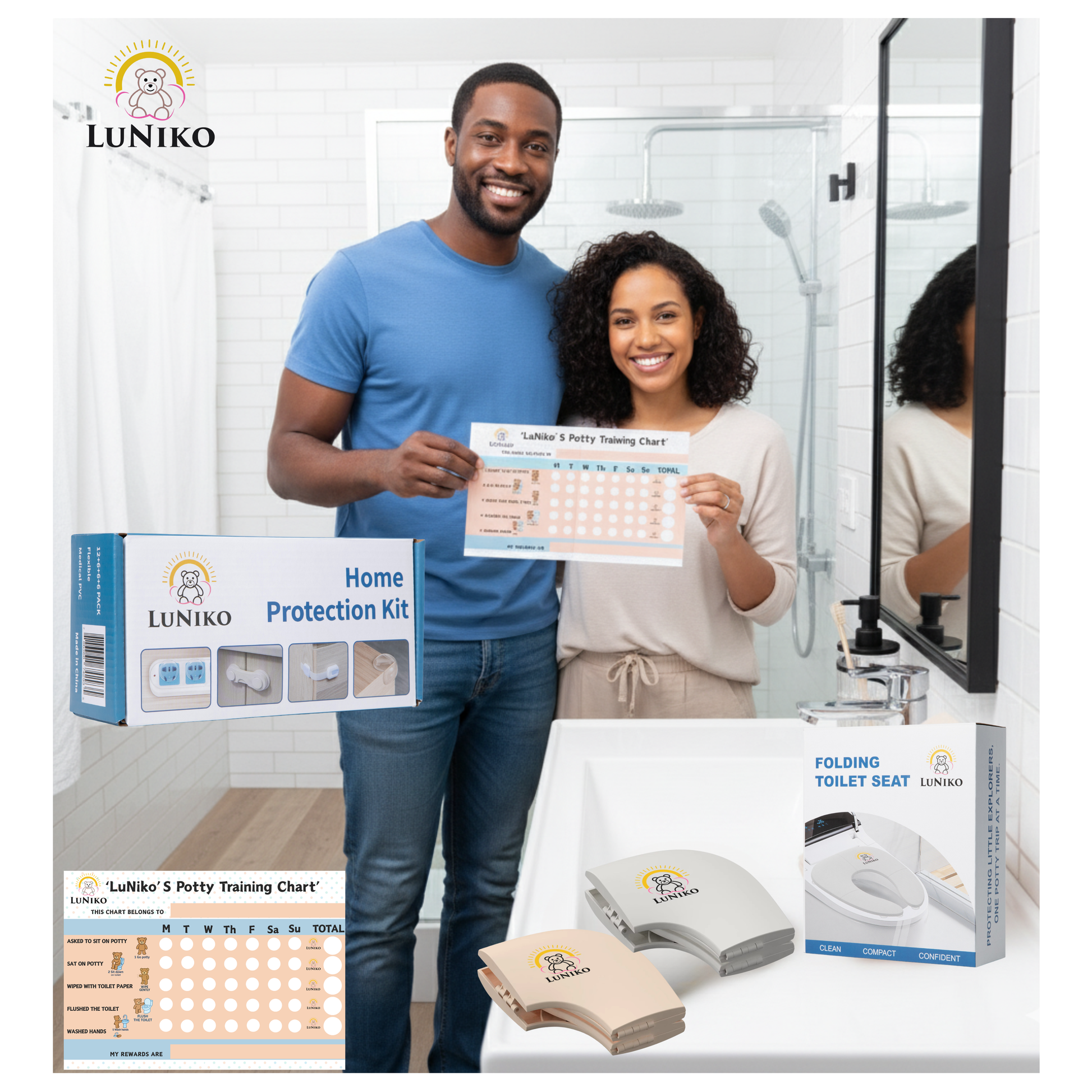 LuNiko Safety & Potty Learning Combo – Home Protection Kit + Folding Potty Seat with Training Chart (Grey Edition)